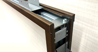 化粧鋼板をベースにインテリアイメージに合わせて、化粧したフレーム素材、その変質・変色を防ぎながら、機能を保つ無溶接造法。